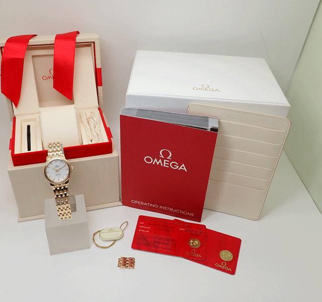OMEGA オメガ 時計 プレステージ 27.4MM 424.50.27.60.05.002 ホワイトシェル文字盤 クォーツ レッドゴールド 750 K18無垢お買取り!!会津若松・喜多方で金時計売るならマルコウ!!
